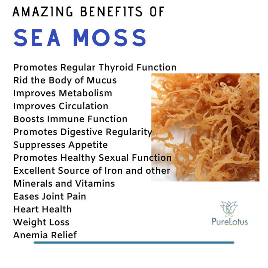 Sea Moss or Irish moss is commonly known as seaweed. It is the best source of vitamins and trace minerals. Sea moss contains minerals like magnesium, potassium, iodine, sulfur, calcium, iron, selenium, and folates. Each mineral plays its own important role. They supply energy to the body, regulate digestion, and detoxify the body.